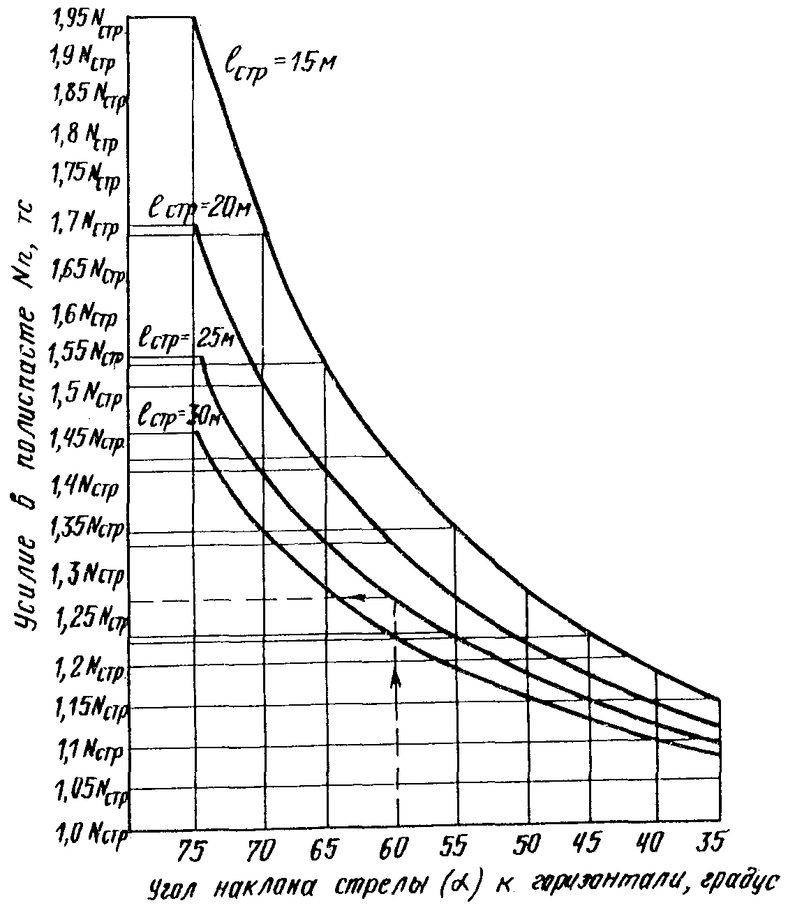 Рис. 50. График изменения натяжения стрелового полиспаста