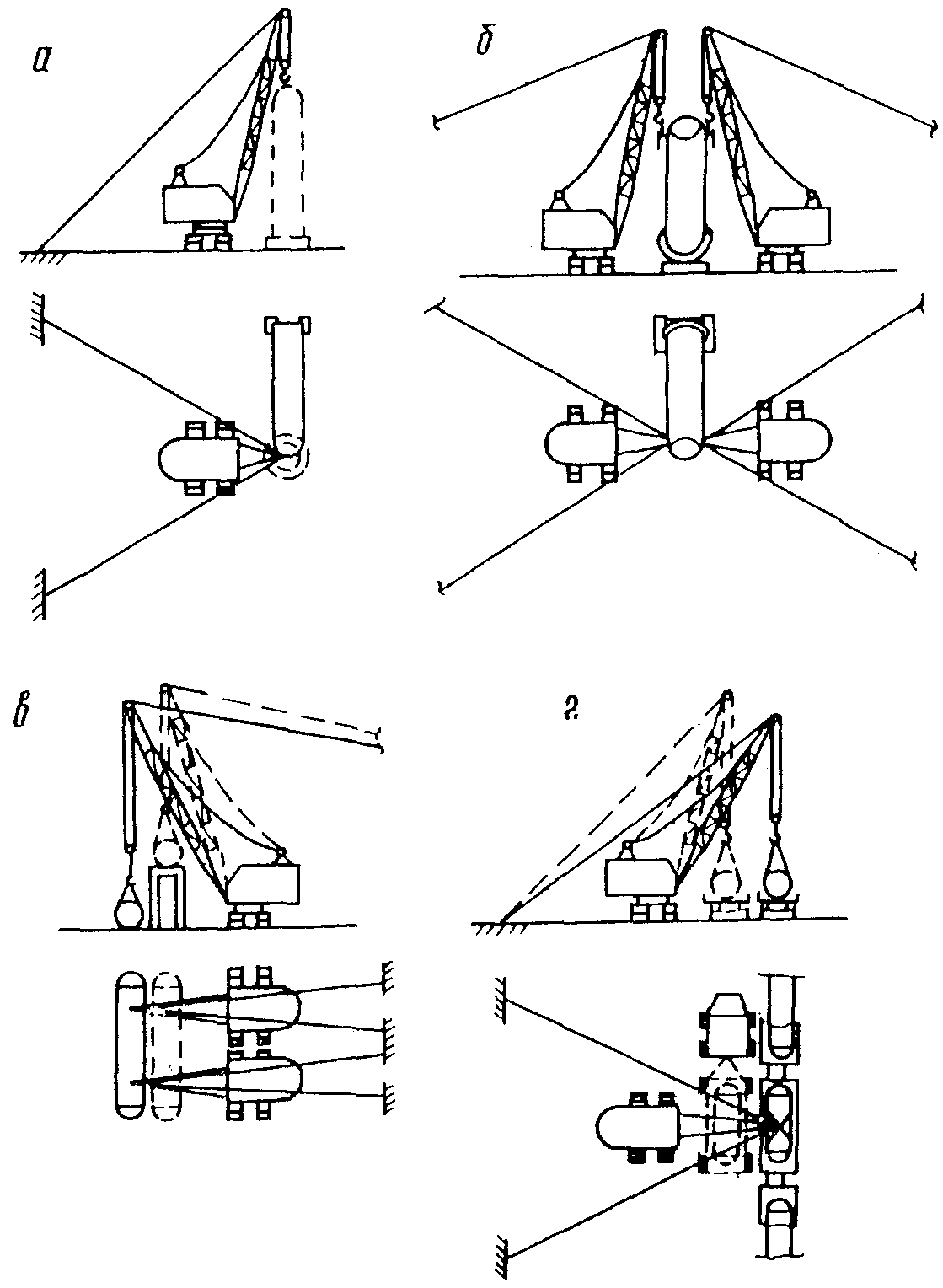 Приведенные в Указаниях схемы монтажа многократно опробованы на строительстве нефтехимических предприятий с одновременными тензометрическими исследованиями нагрузок в элементах крана.
