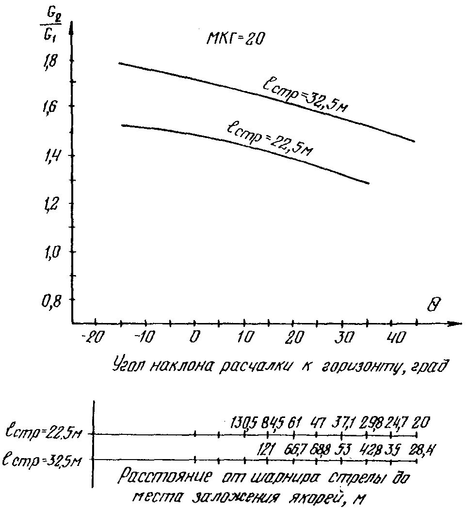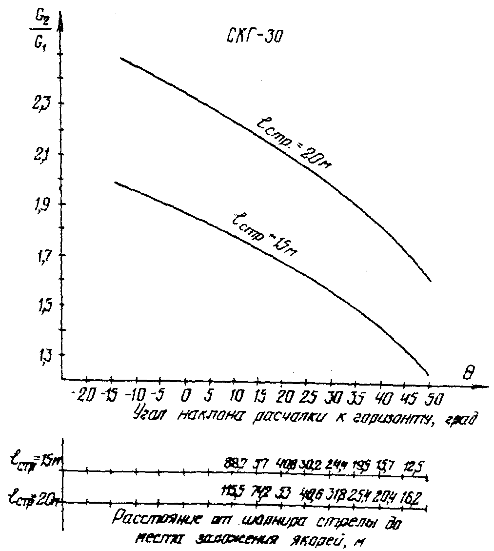 от вылета крюка крана СКГ-30 (СКГ-40) при различных углах