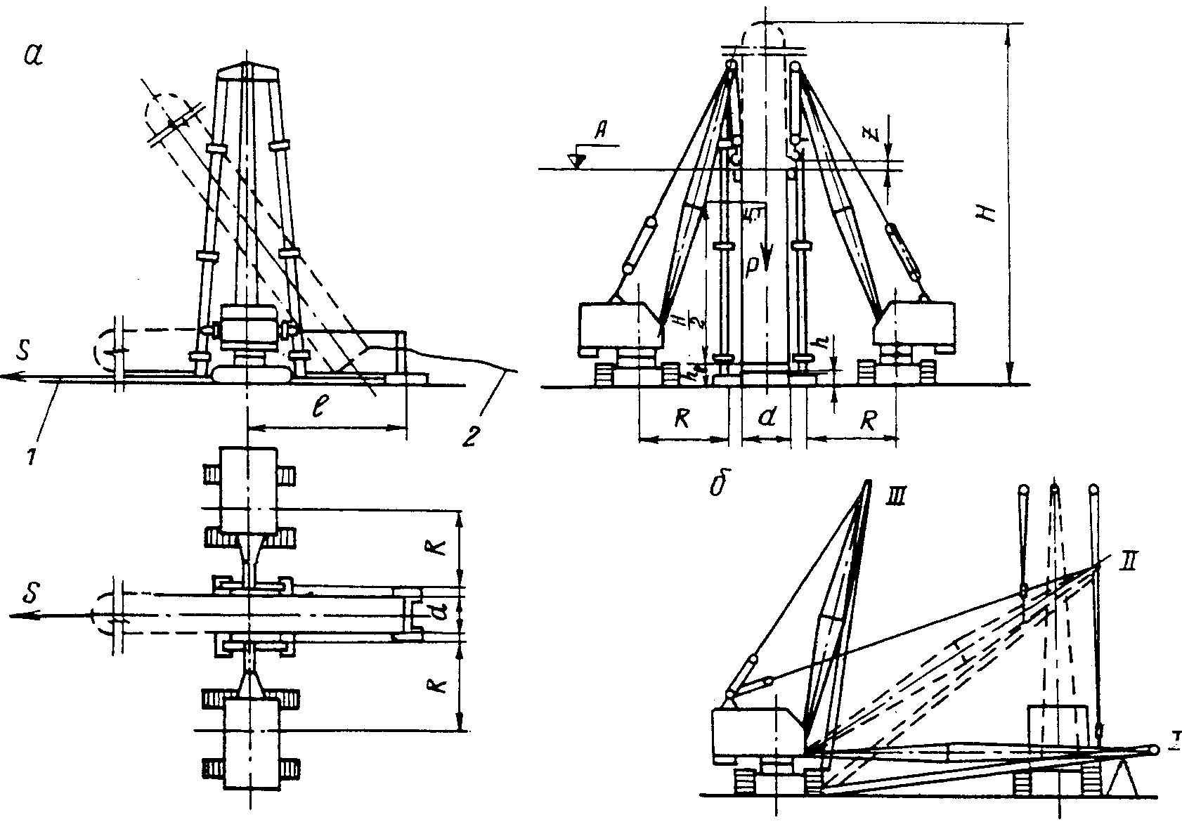 а) с временно расчаленными стрелами, в том числе с маневренными;