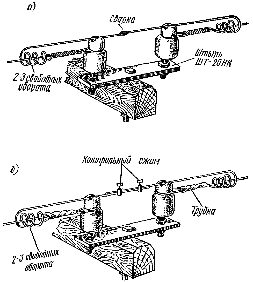 2.1.1. В качестве проводов используют проволоку: стальную, биметаллическую (сталемедную) марок БСМ-1 и БСМ-2, а также многожильную сталеалюминиевую марок АС-10, АС-16 и АС-25. Справочные данные о линейной и перевязочной проволоке указаны в Приложении 2 (