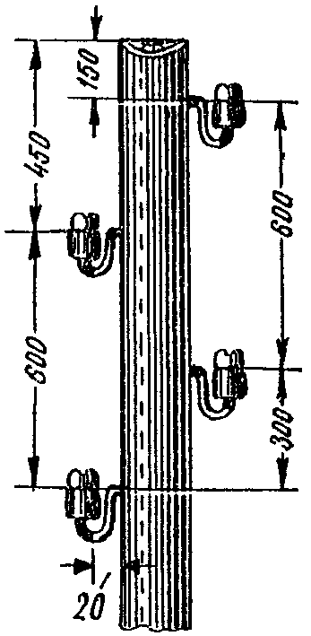 2. Если число столбов на 1 км линии больше или меньше, то нормы расхода материала надо уменьшить или увеличить на следующие коэффициенты: 0,6 при 12 столбах на 1 км; 0,8 при 16 столбах на 1 км; 1,2 при 24 столбах на 1 км; 1,6 при 32 столбах на 1 км; 1,8 при 36 столбах на 1 км.