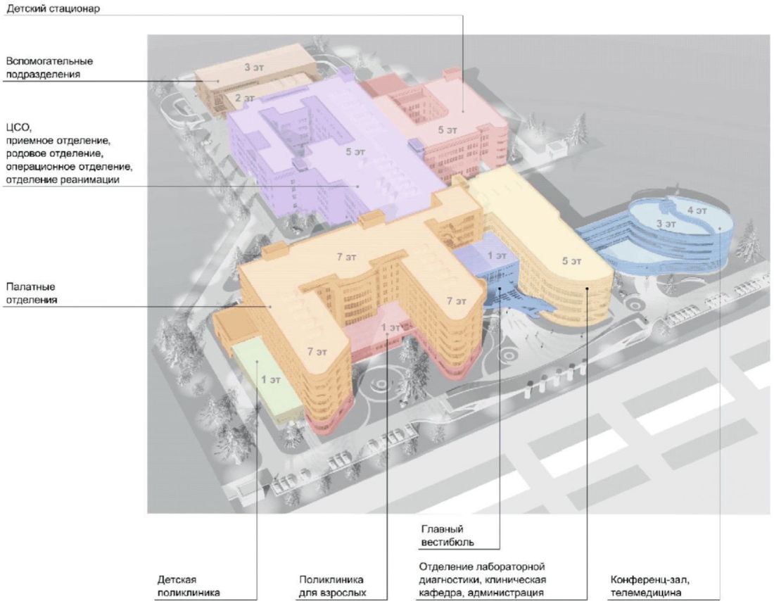 4.3 Применение высоких медицинских технологий и их постоянная инновация выражаются в экспансивном развитии зон для диагностики и лечения (отделения лучевой, функциональной, эндоскопической, лабораторной диагностики, радиотерапии, операционные блоки).