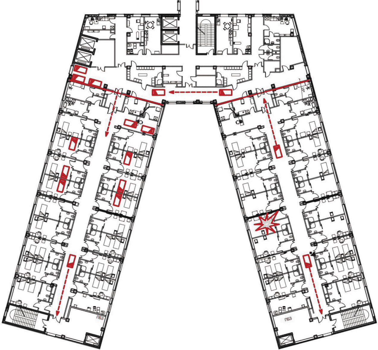 - компоновка зданий и блоков должна обеспечивать соблюдение норм пожарной безопасности;