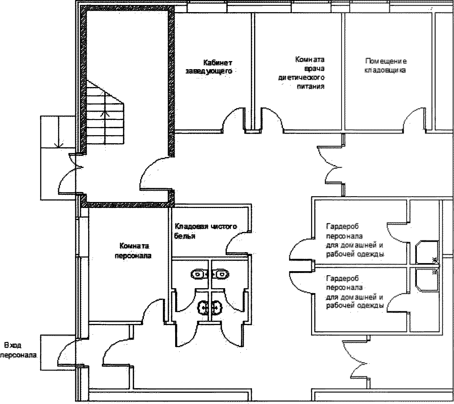 2 | Уборная для персонала | 1 | 3 | 3 |