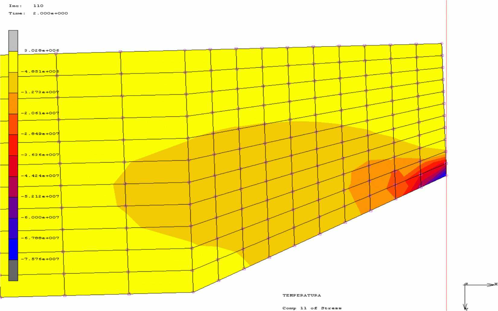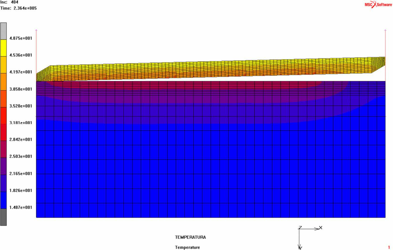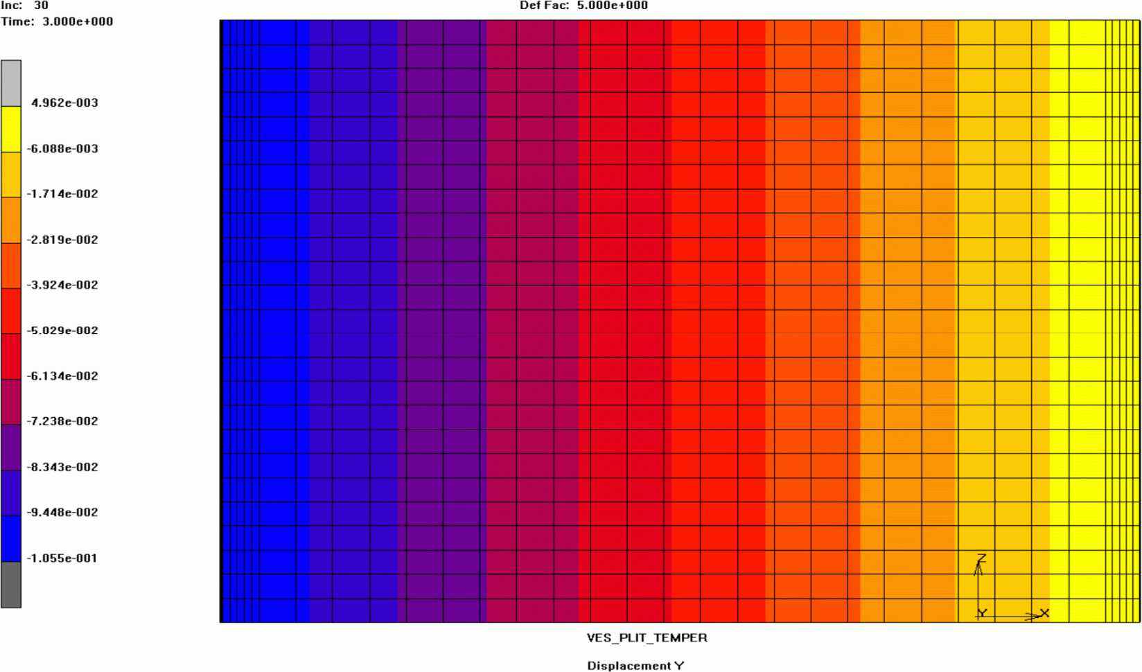 5. Задание различных температур на верхней и нижней гранях плиты позволяет смоделировать температурное воздействие на покрытие.