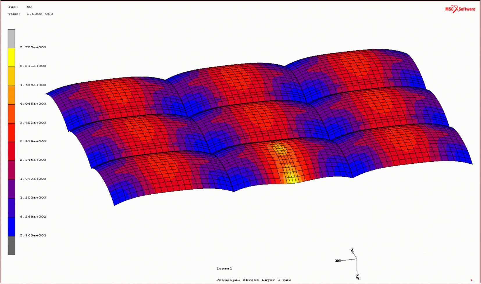 Максимальные растягивающие напряжения в покрытии возникают от температурного воздействия, а нагрузка, приложенная по краям плиты, уменьшает их значение