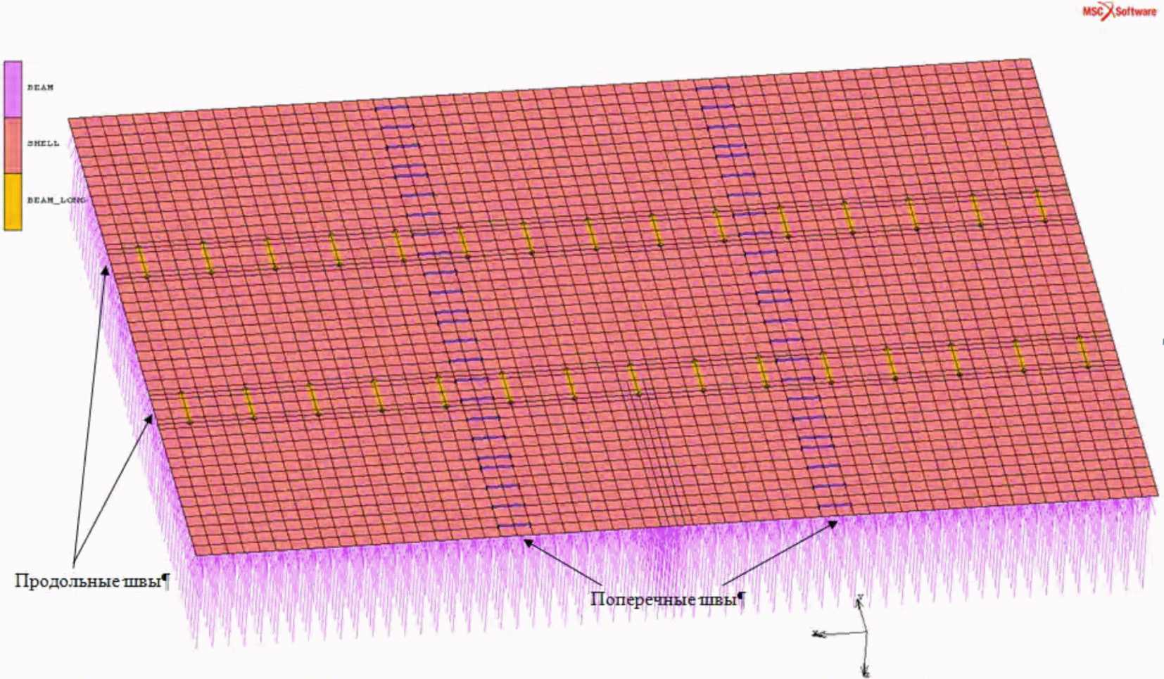 2. Для моделирования стальных штырей, соединяющих плиты между собой в продольных и поперечных швах необходимо использовать балочные конечные элементы типа "beam".