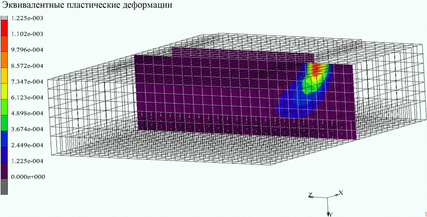 [1], размеры плиты приняты равными вдоль осей X, Y и Z соответственно 5, 0,25 и 3,75 м
