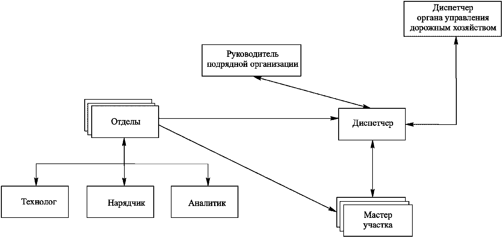 4.2.6 Требование адаптивности производственной структуры вытекает непосредственно из динамичного, неопределенного характера факторов внешней среды предприятия. Производственная структура дорожной организации, ее производственных подразделений (мастерских участков) должна "уметь" приспосабливаться под изменяющиеся окружающие условия. Это свойство структуры позволяет осуществлять технологический процесс при изменении внешних условий с необходимым качеством и минимальными потерями (в частности, финансовыми).