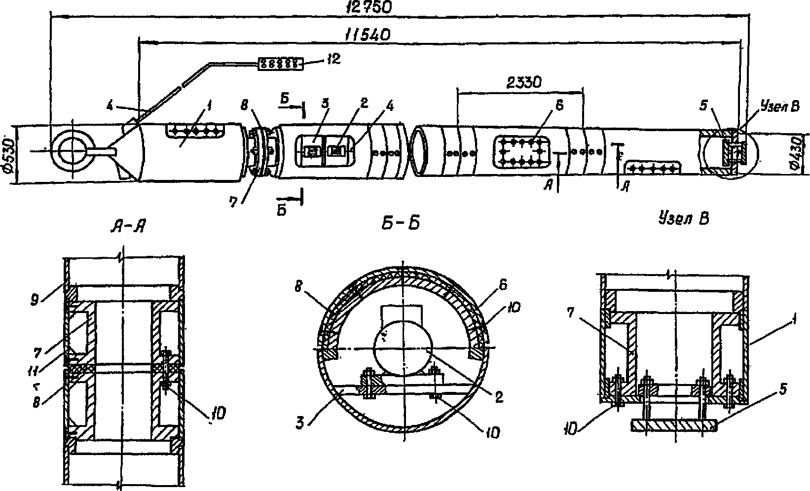 9 - оболочка секции; 10 - стяжной болт; 11 - защитный