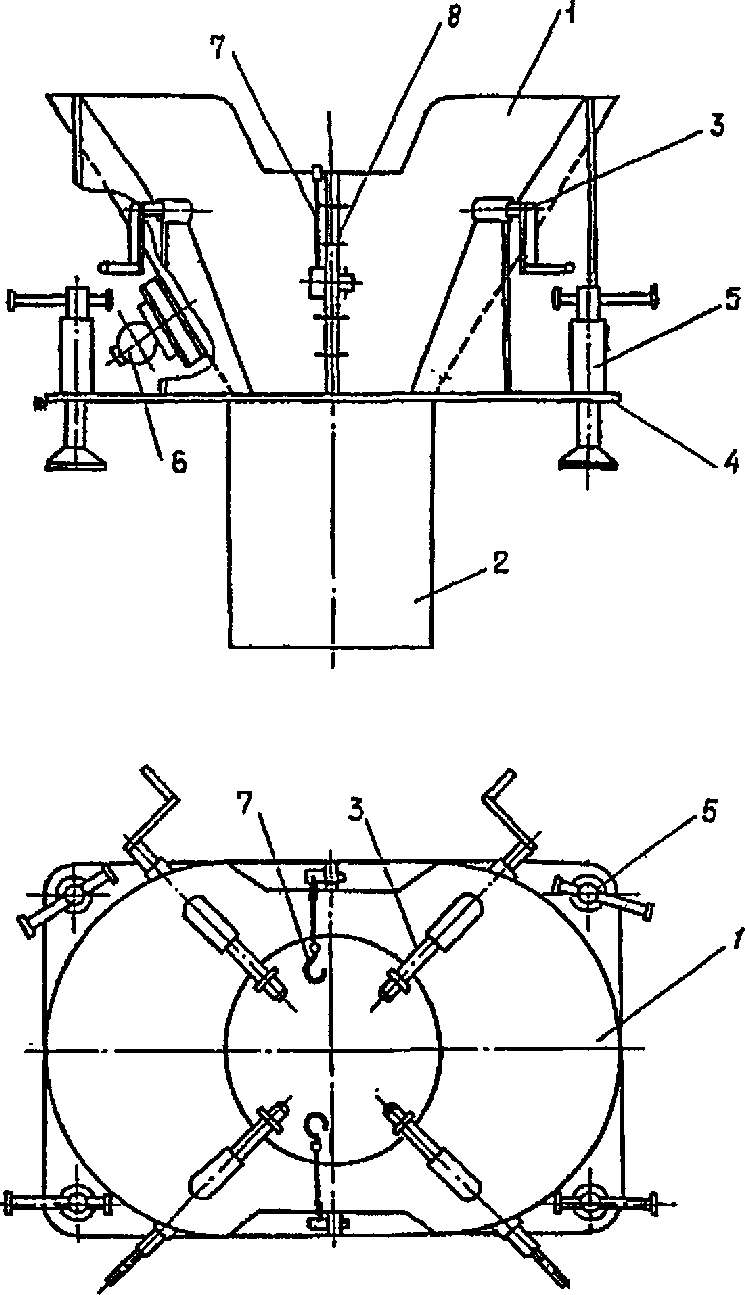 1.3. Изготовление буронабивных полых свай выполняют с помощью навесного оборудования - многосекционного вибросердечника, базовой машиной для которого служит подъемный кран грузоподъемностью не менее 25 т, а также специального бункера-центратора.