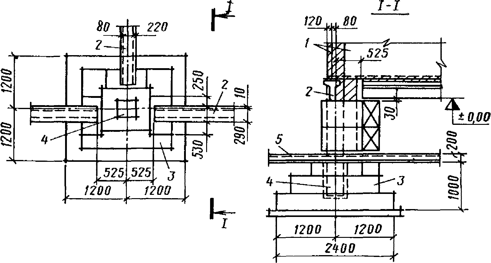 1 - внутренние перегородки; 2 - фундаментные балки;