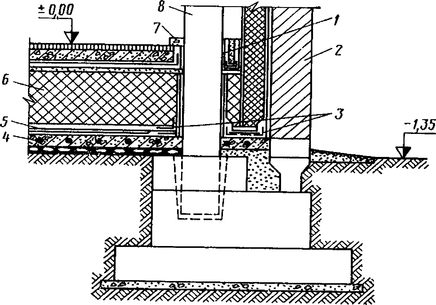 8 - грунт основания; 9 - теплоизоляционный слой (эффективный