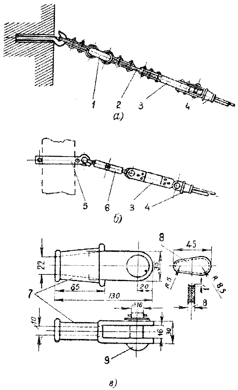<1> Таблица составлена с учетом, что усилия от излома провода не превышают 250 кГ, величина выноса (зигзага) провода от оси не более 300 мм, а усилие натяжения провода
