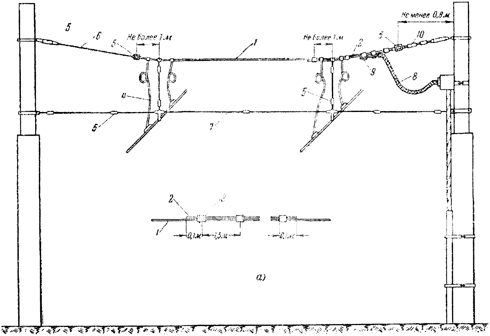 <*> Пересечение ВЛ напряжением менее 1 000 в с поперечинами контактной сети трамвая и троллейбуса допускается в исключительных случаях при соблюдении следующих требований: