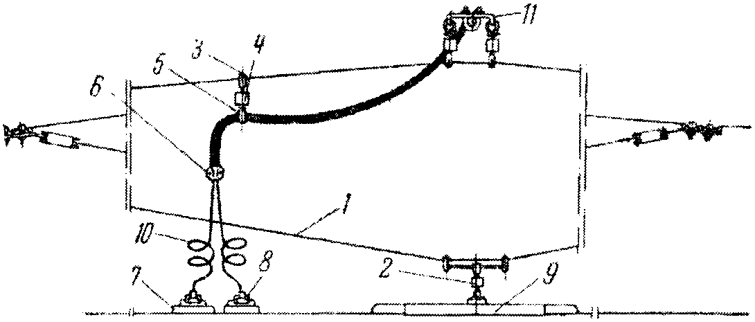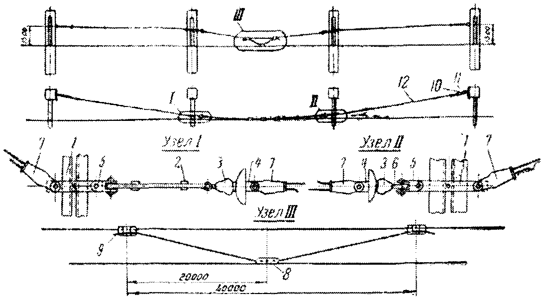 <*> В пределах одного анкерного пролета разница в длине между точками подвеса не должна превышать 2 - 3 м; по местным условиям для отдельных пролетов допускается отклонение: в эластичных подвесках - 25%, в прочих подвесках - 15%.