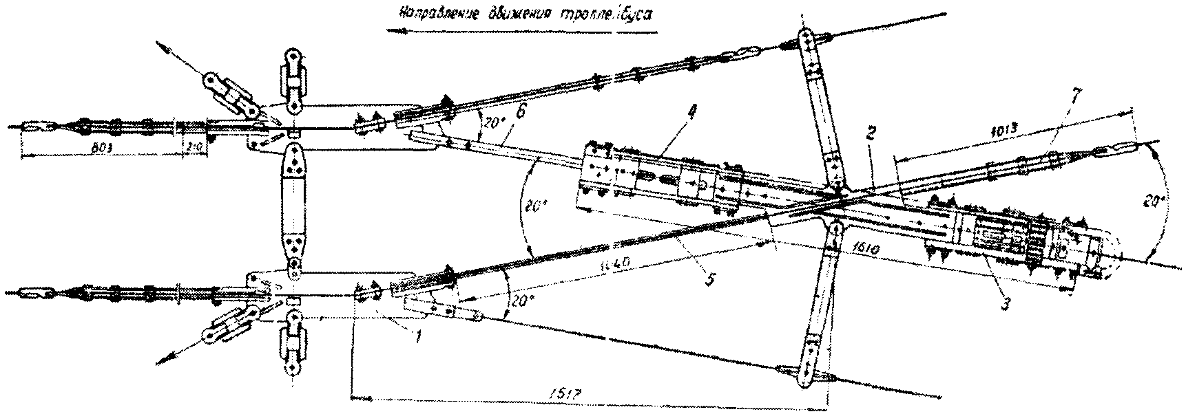 8. Расстояние между положительным и отрицательным контактными проводами троллейбусной линии с номинальным напряжением до 600 в постоянного тока должно быть 520 мм, а при эластичных системах подвески оно может быть увеличено до 700 мм. На специальных частях контактной сети (воздушных стрелках, пересечениях, секционных изоляторах и т.п.) допускаются отклонения от указанных размеров.