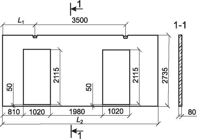 Примечание - Значения, указанные в скобках, относятся к панелям, выполненным из легкого бетона. |