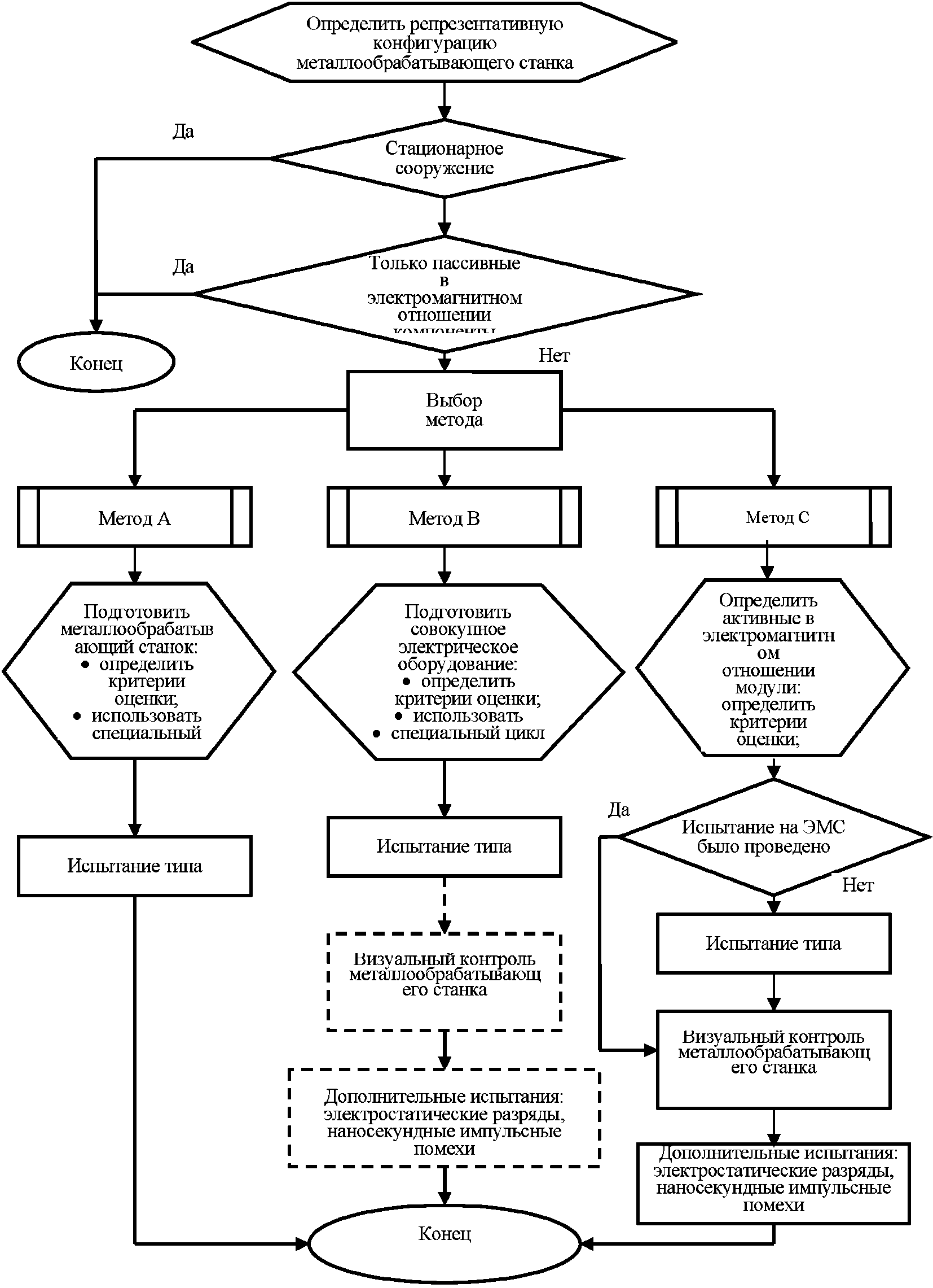 Для подтверждения того, что при разработке модели станка установленные нормы для ЭМС были учтены, должен быть проведен визуальный контроль или подготовлена программа испытаний, которая описывает, какие испытания и в каких областях репрезентативно изготовленного металлообрабатывающего станка были проведены.