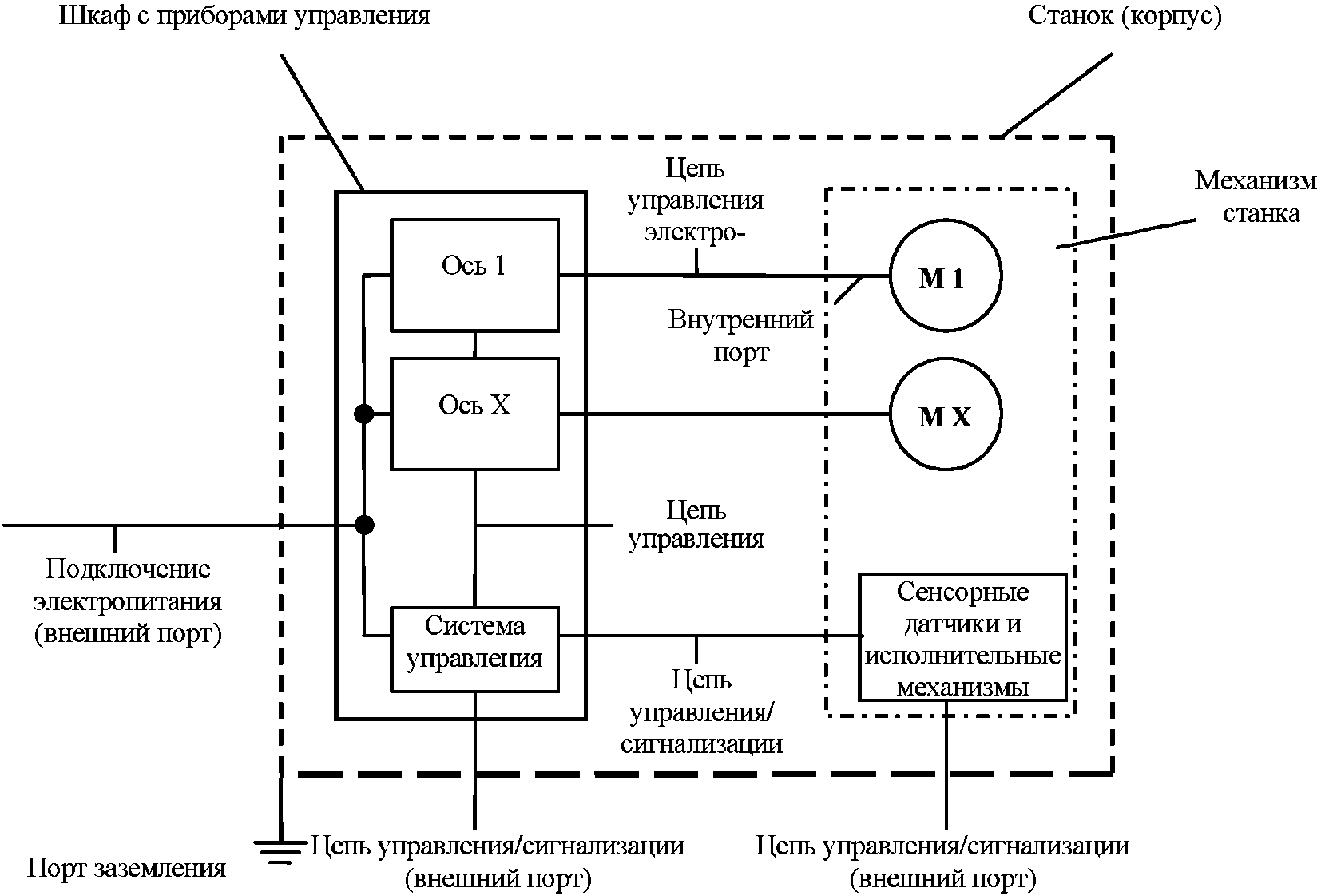 Примечание - Сопряжение означает физическую границу металлообрабатывающего станка в сборе или модуля.