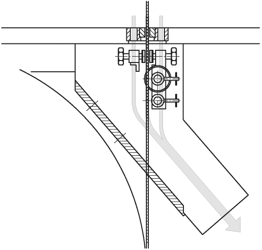 Максимальный прогиб от усилий, приложенных к концам ограждений, как показано на рисунке G.1, не должен вызывать соприкосновения ограждения с ленточной пилой.