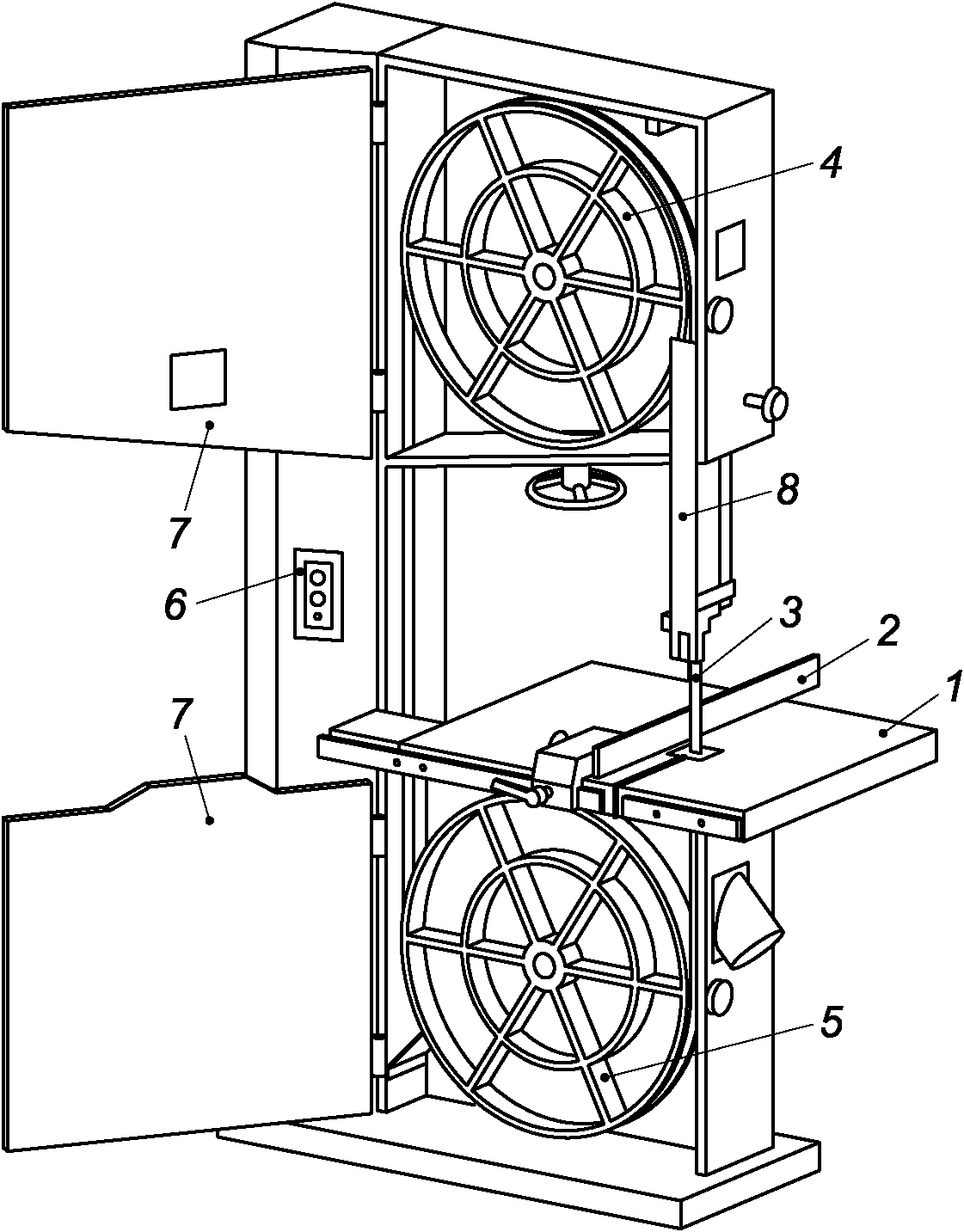 1 - ленточнопильный столярный станок, ленточная пила;