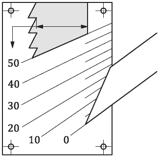 Испытание проводят при крайнем положении ограждения, т.е. при защите всей зоны резания.