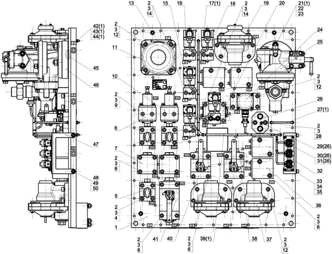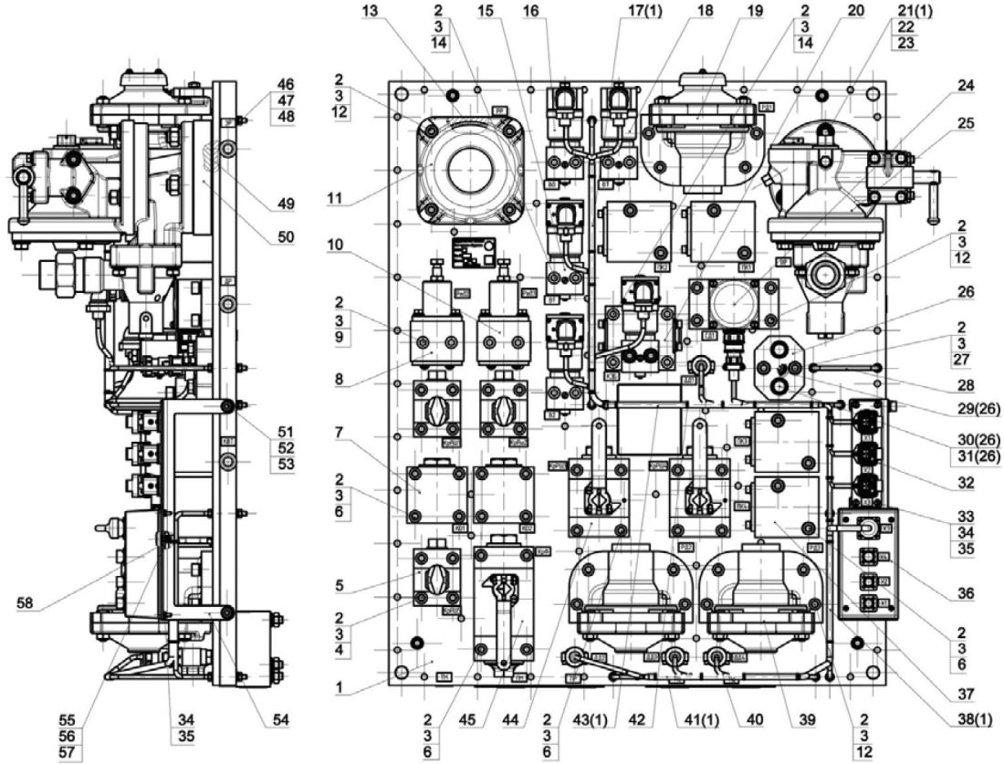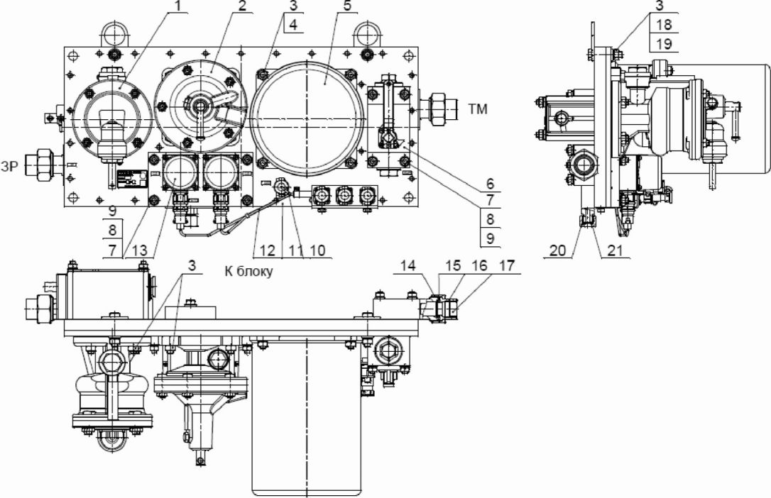 2.2.4.3. При капитальном ремонте необходимо продуть сжатым воздухом (давлением не более 0,34 МПа (3,5 кгс/см2)) каналы в кронштейн-плите без снятия кронштейн-плиты каждого блока. Проверить крепление подводящих трубопроводов.