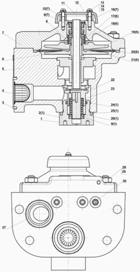 Примечание - Пружина тарельчатая поз. 7 является допускаемой заменой на поз. 6 Шайба тарельчатая.