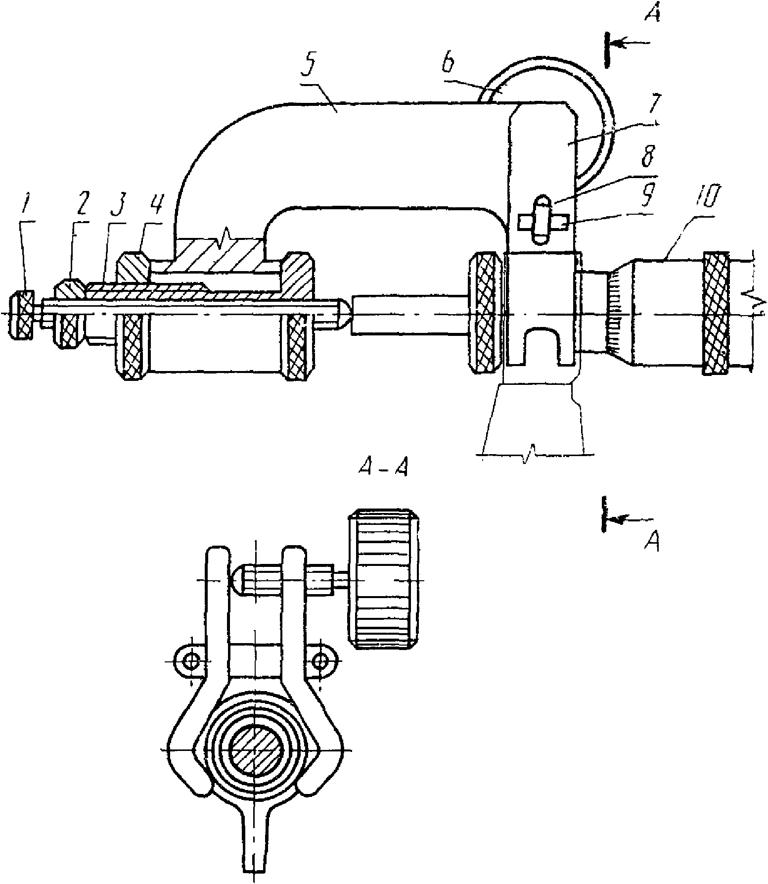 6 - винт; 7 - зажим; 8 - шарнир; 9 - ось шарнира;
