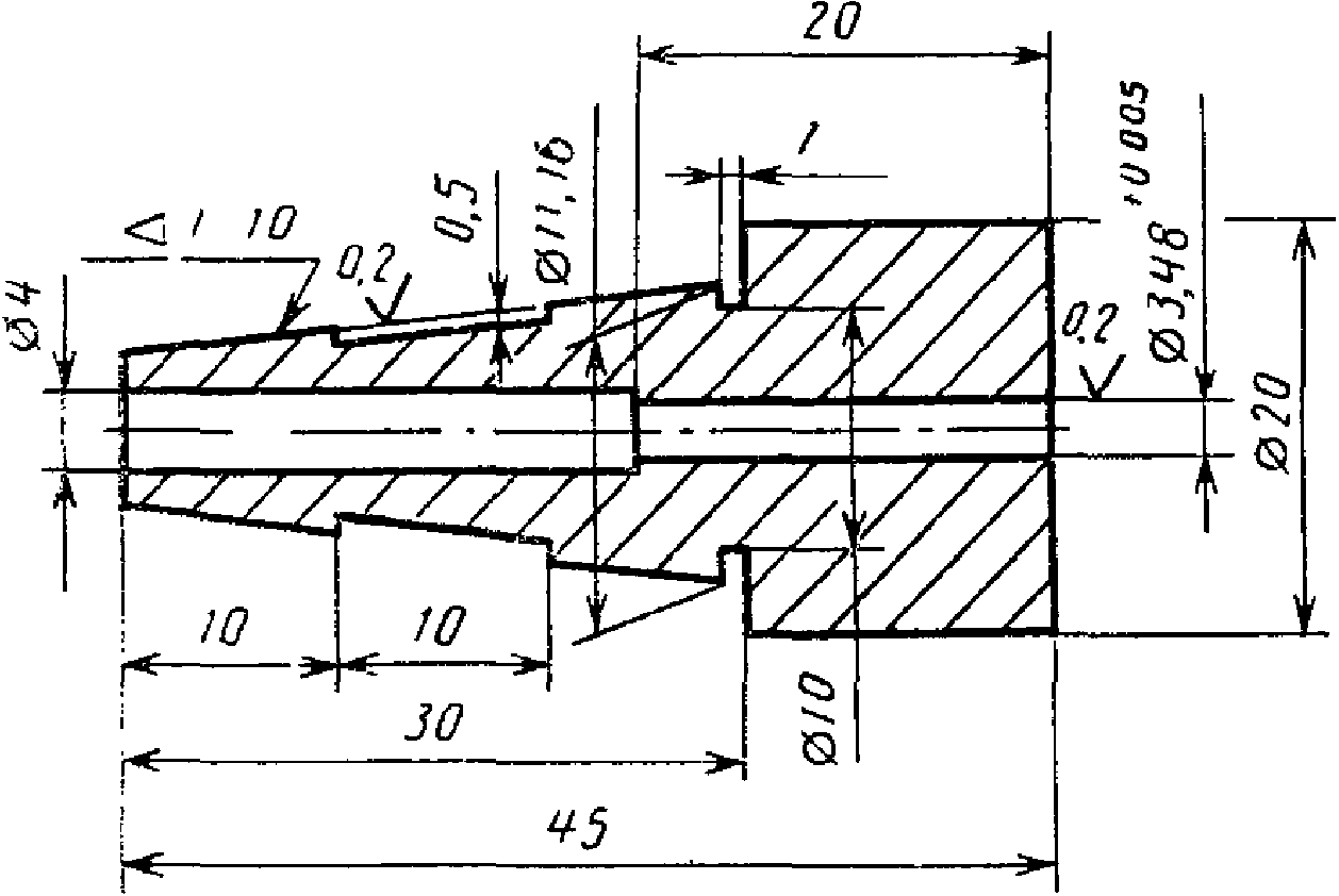 Допуск радиального биения конуса относительно отверстия диаметром 3,48 мм - 0,003 мм.