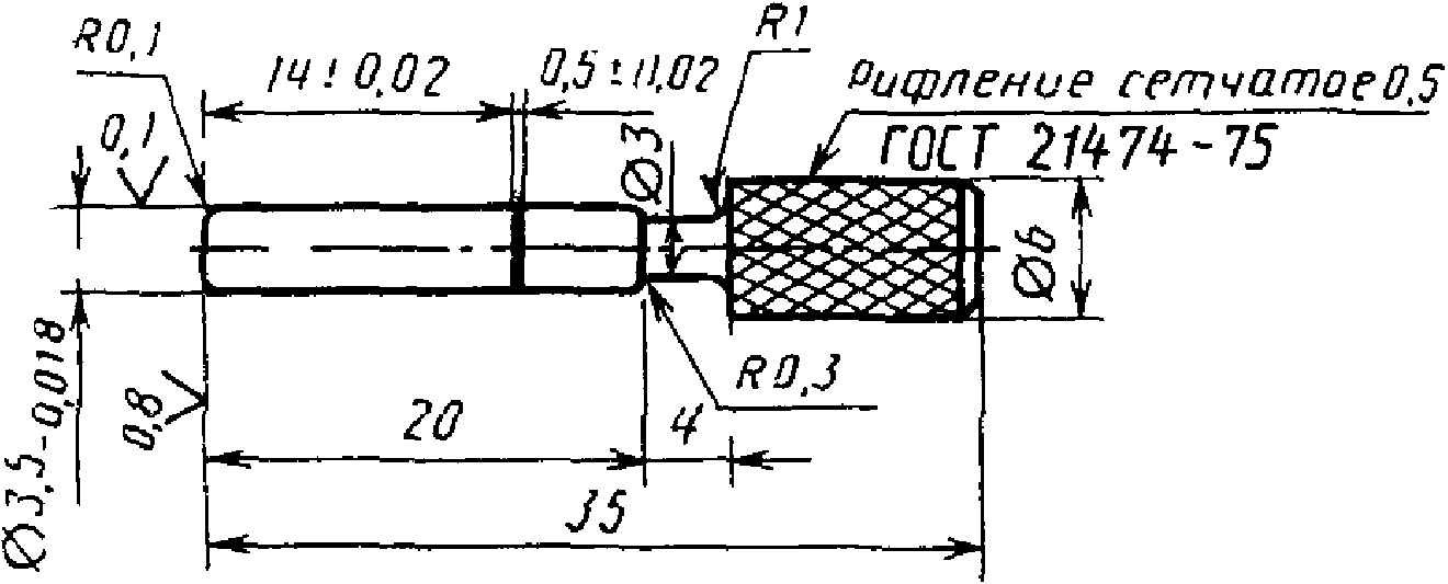 1 - наконечник цилиндрический; 2 - винт ВМ3-6g x 8.58.016