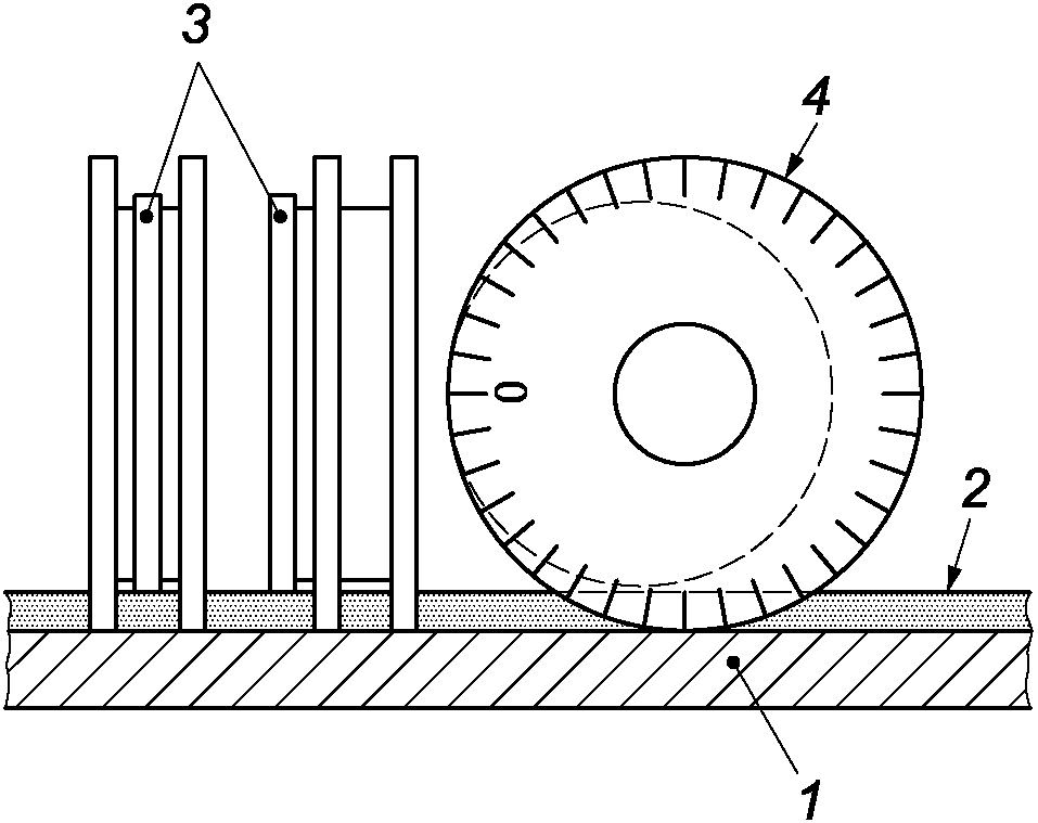 На твердых породах древесины с крупными порами измерения следует выполнять вне открытых пор на поверхности древесины. Места, где лакокрасочный материал проникает в открытые поры, нельзя включать в измерения. Независимо от запланированных позиций измерения, те точки, где лакокрасочный материал проник в открытые поры, исключают из вычислений (см. рисунок C.2).