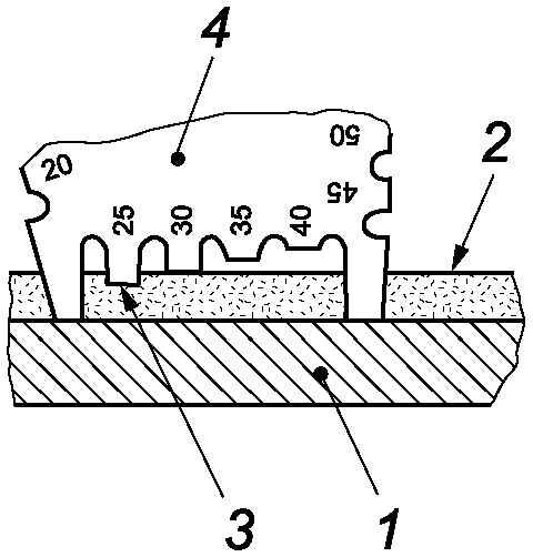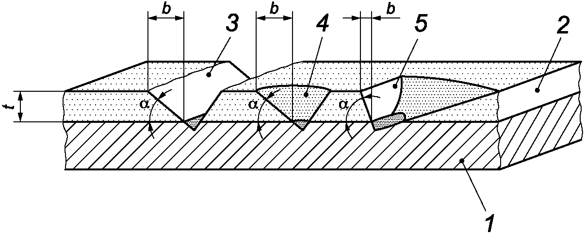 На хвойных породах древесины (мягкие породы древесины) измерения следует проводить на верхней поверхности, т.е. там, где поверхность была разрезана в ходе обработки древесины. Независимо от запланированных позиций измерения, те точки, где лакокрасочный материал проник в волокна, исключают из расчетов (см. рисунок C.3).