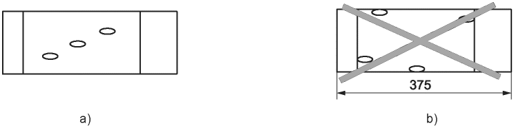 Примечание - Щепы должны равномерно располагаться по ширине панели, см. a), но не близко к краям и торцам панели, см. b).