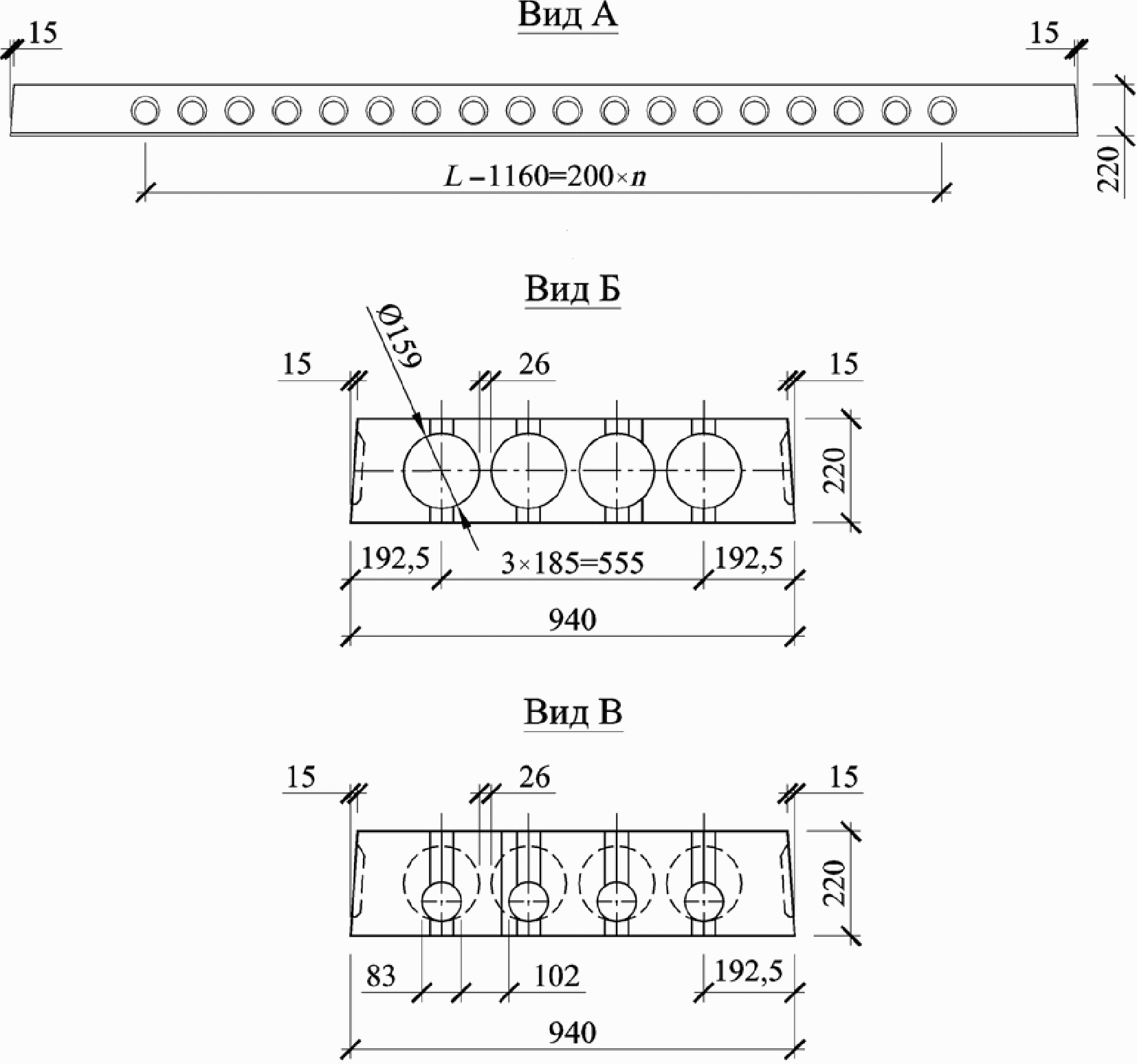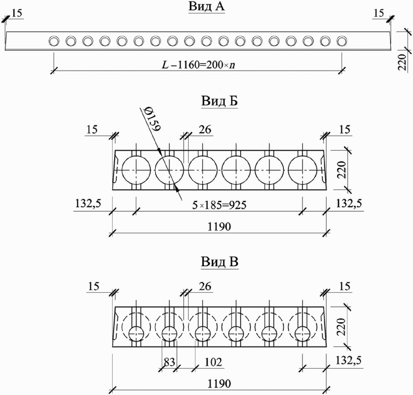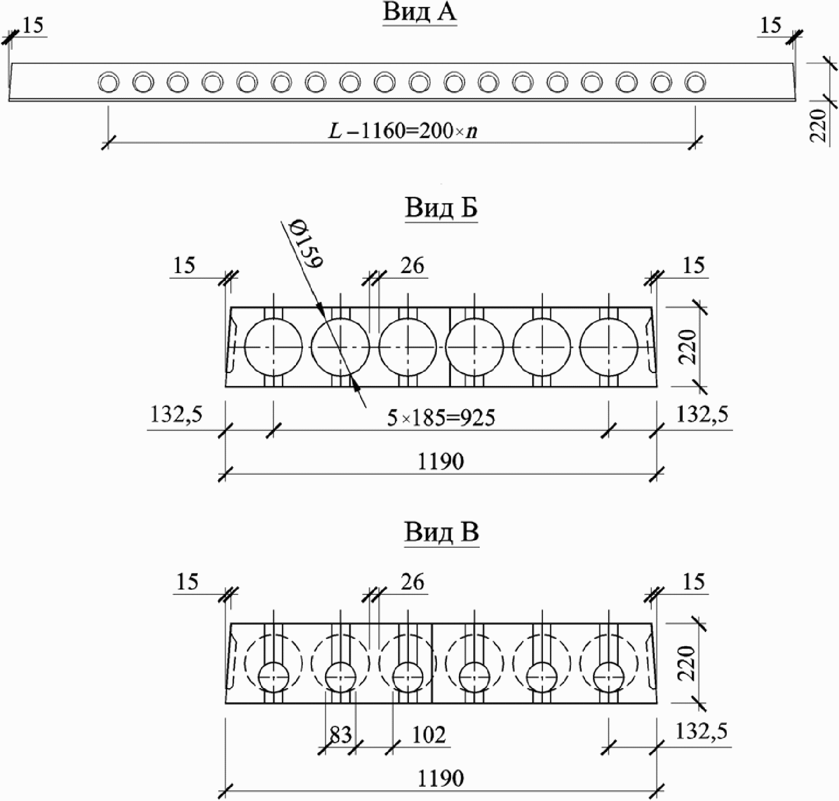 1.1 Настоящий стандарт устанавливает технические требования, методы контроля и правила приемки, транспортирования и хранения железобетонных многопустотных плит межвидового назначения, опирающихся по двум сторонам, высотой 220 мм с основным размером пустот 159 мм из тяжелого или конструкционного легкого бетонов.