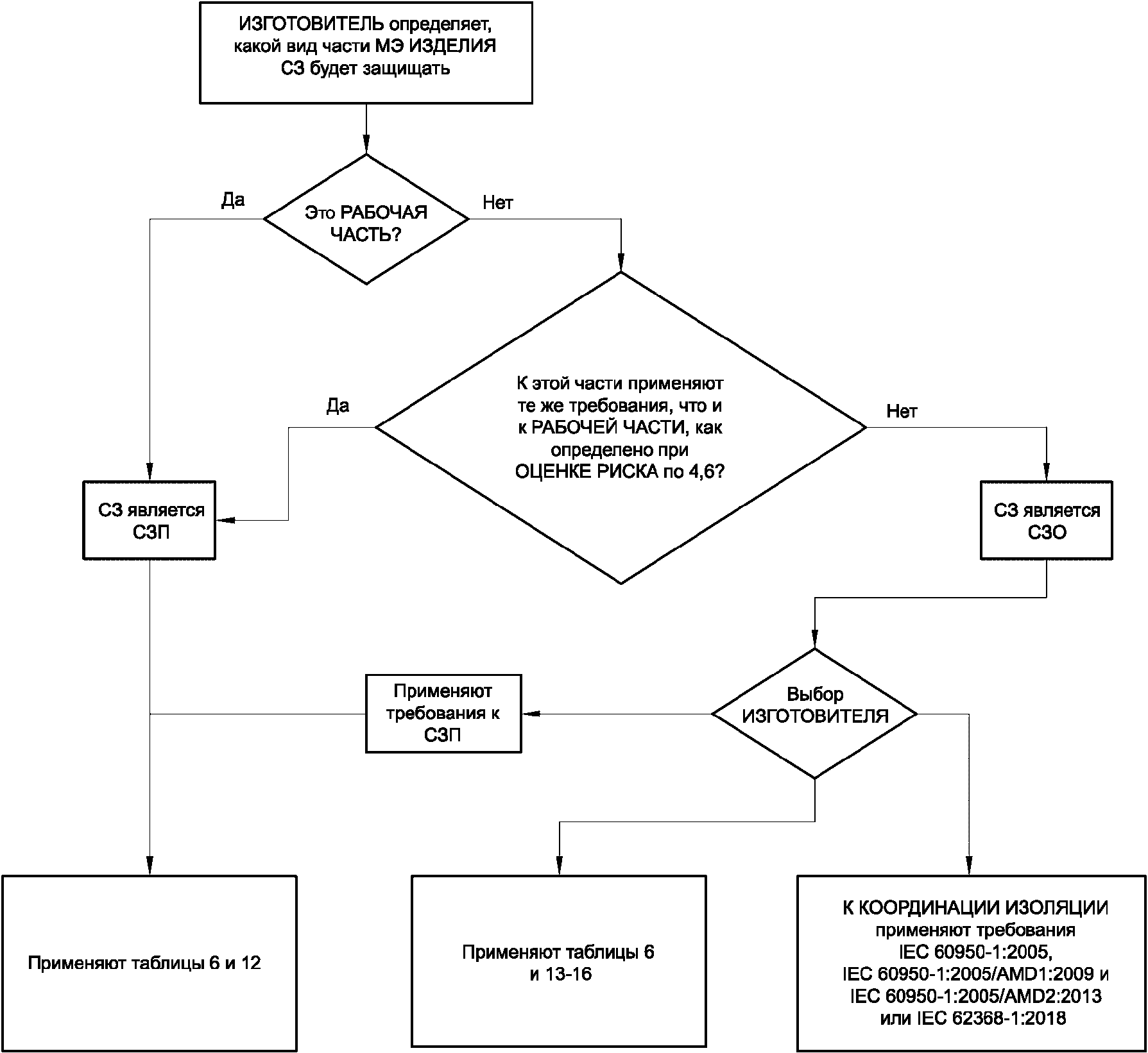 пункте 8 настоящего стандарта, включая многие таблицы, используемые для определения требований к СРЕДСТВАМ ЗАЩИТЫ, в первую очередь к СРЕДСТВАМ ЗАЩИТЫ ОПЕРАТОРА и КООРДИНАЦИИ ИЗОЛЯЦИИ. Требования, включенные путем ссылки, рассматриваются в Изменении 2. Взятые из IEC 60950-1 требования будут рассмотрены в ходе разработки четвертой редакции этого документа.