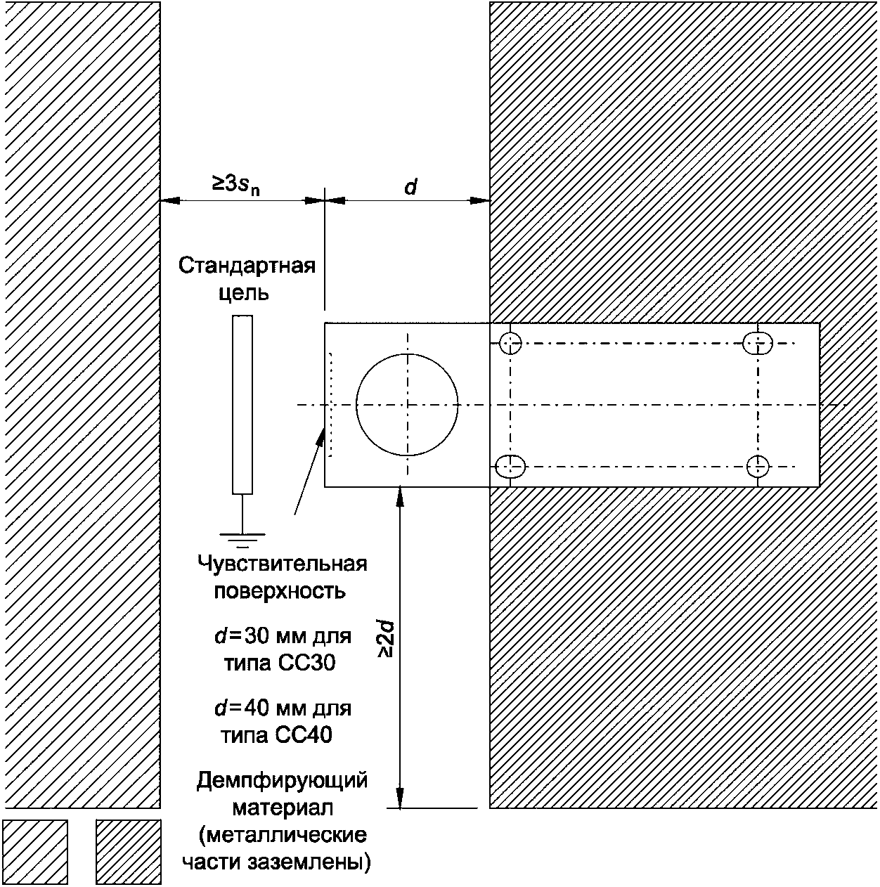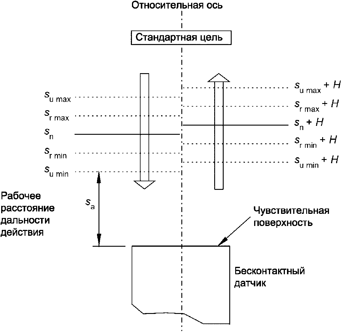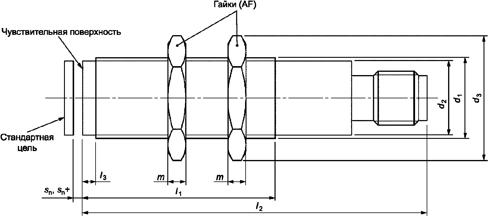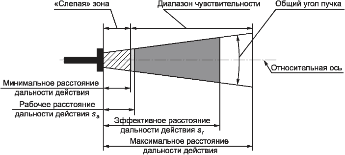 Во всем диапазоне значений постоянного тока A эффективное расстояние дальности действия sr может изменяться на +/- 30% от значения, измеренного при 0·Iref.