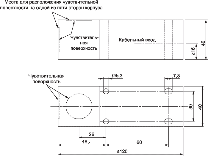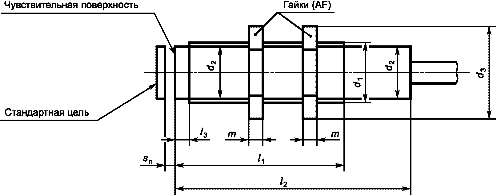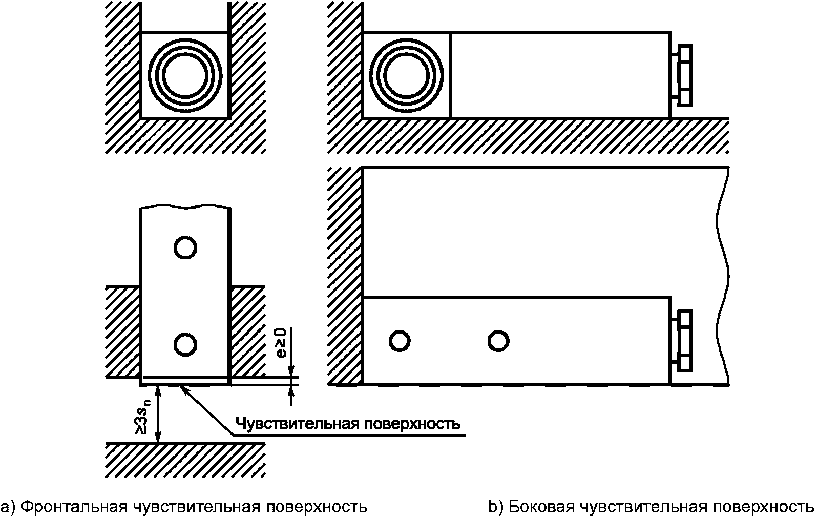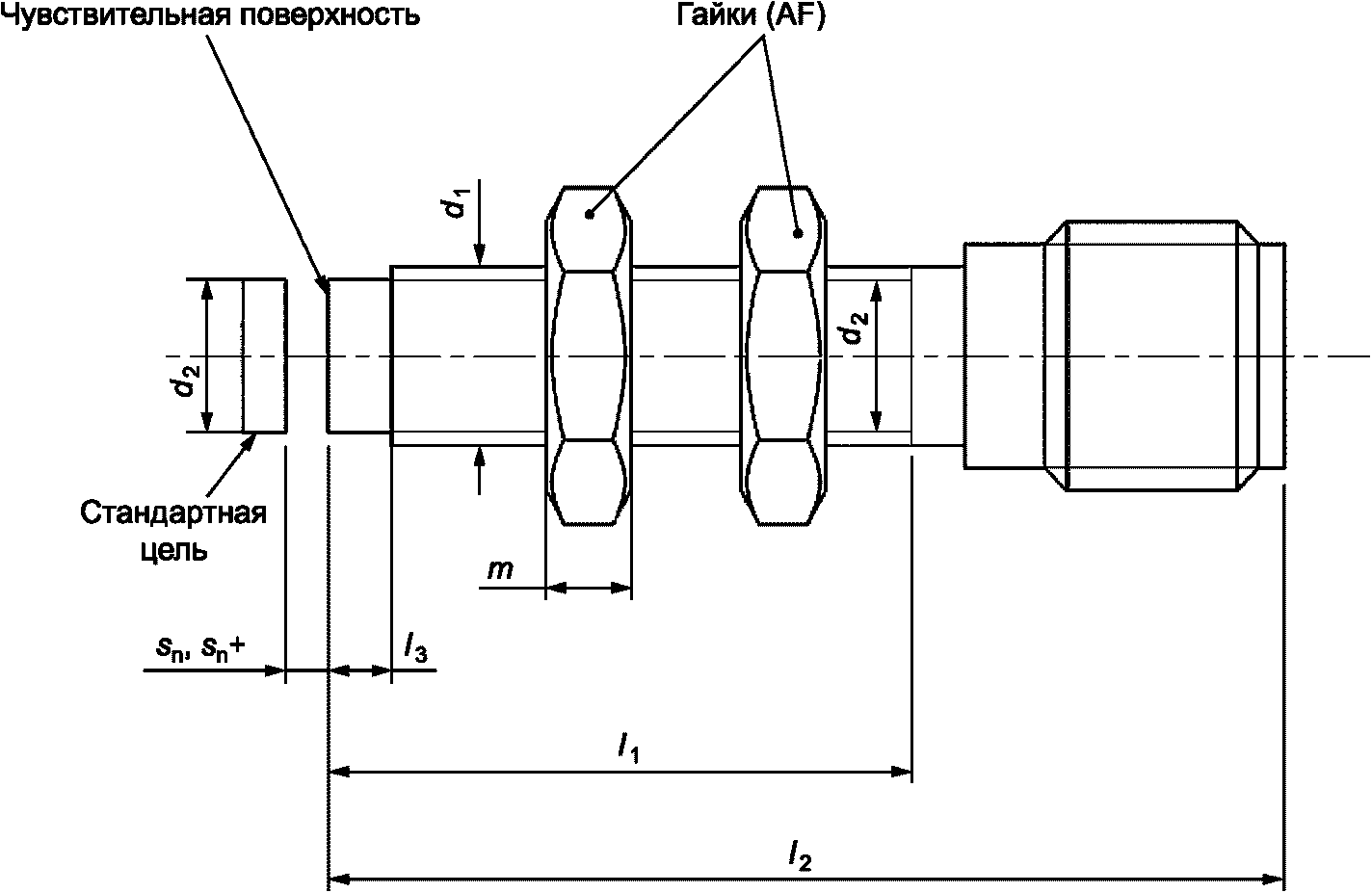 Во всем диапазоне значений постоянного тока A эффективное расстояние дальности действия sr может изменяться на +/- 30% от значения, измеренного при 0·Iref.