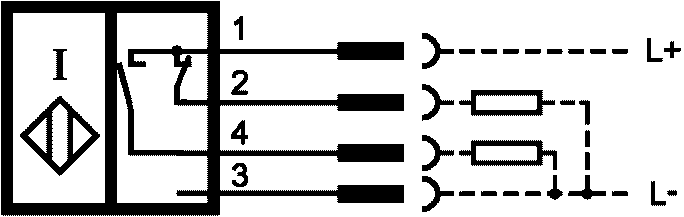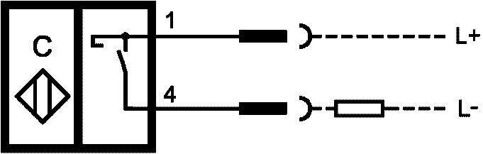 Индуктивный бесконтактный датчик, четырехконтактный выход PNP на постоянном токе, NO NC | Емкостный бесконтактный датчик, двухконтактный на постоянном токе, NO |