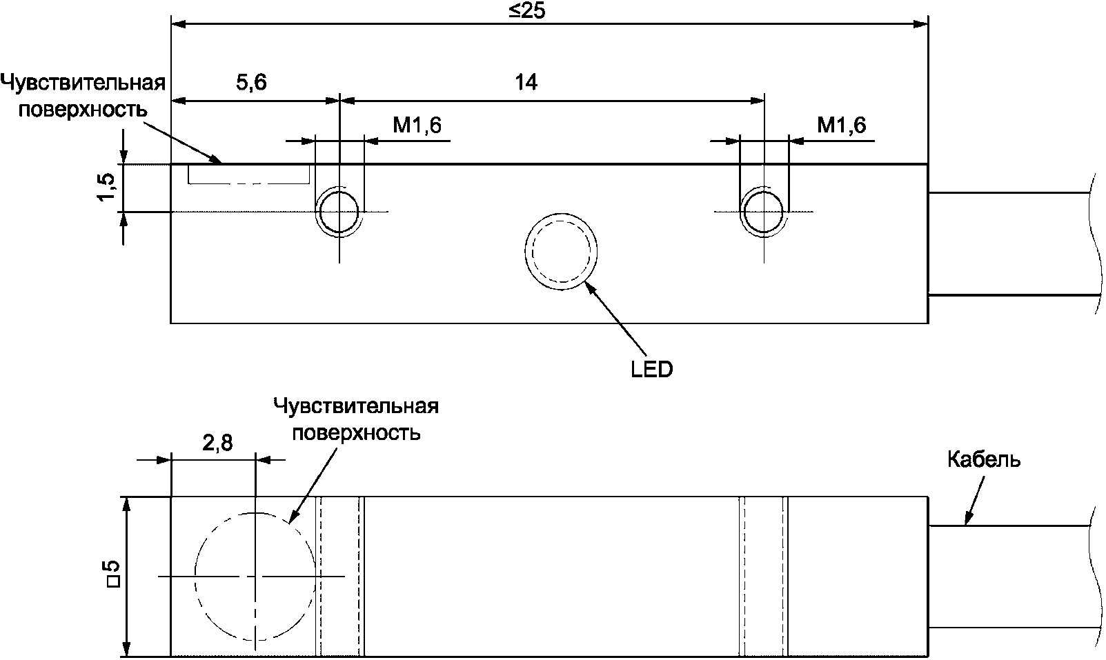 a) Диффузный отражающий фотоэлектрический сенсорный