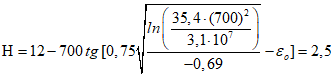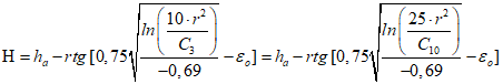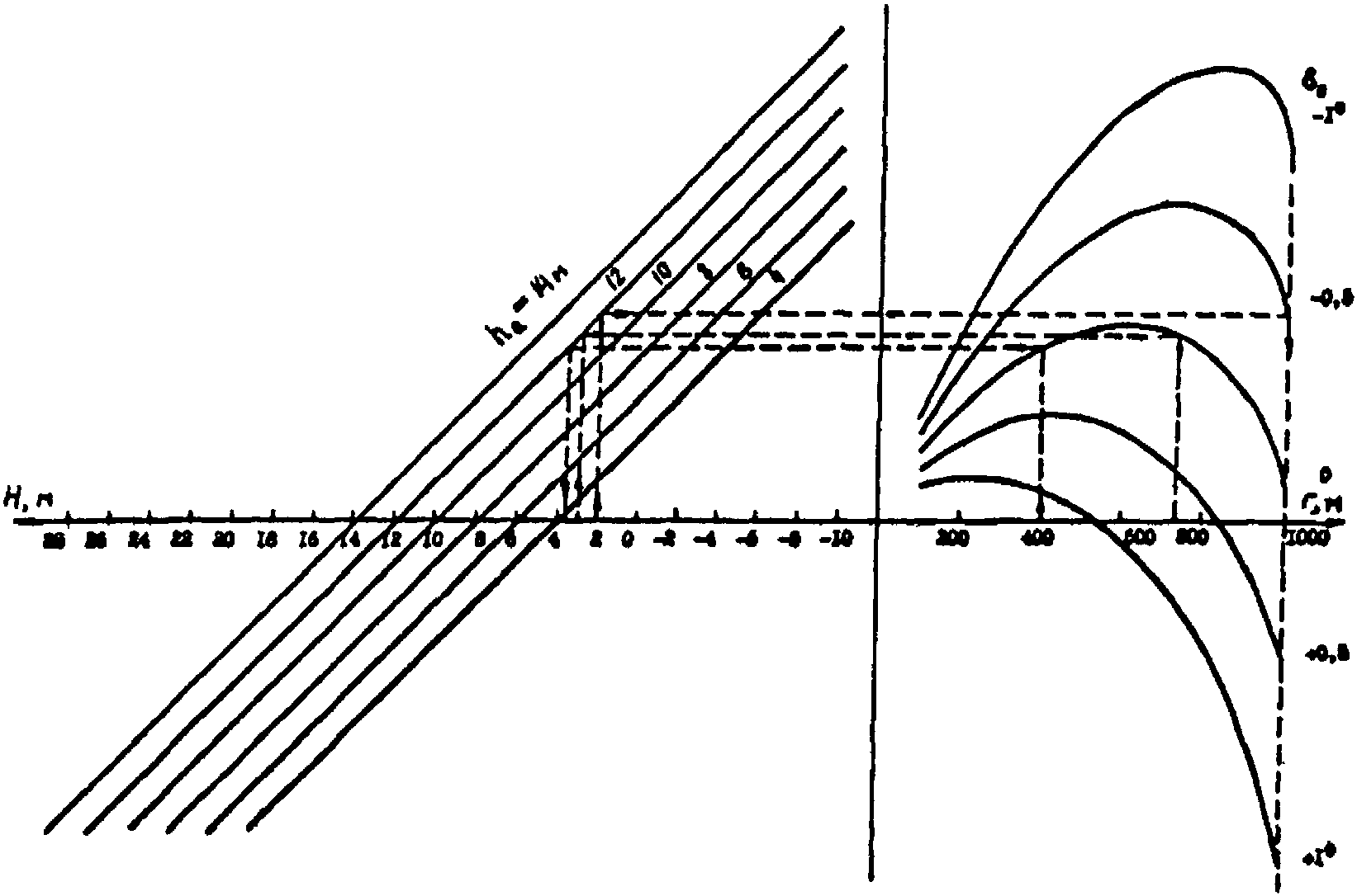 Для выбранных значений дальности, например, для r = 700 м при H = 2 м определяем