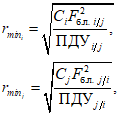 2.1. Значения предельно допустимых уровней ППЭ, создаваемые двухчастотными (двухканальными) РЛС для отличающихся режимов излучения, т.е. при совпадающих, равных и несовпадающих, неравных диаграммах направленности антенн каналов будут различными. Кроме того значения ПДУ будут изменяться с изменением отношения энергетических потенциалов qi/j для i/j-го оцениваемых каналов РЛС: