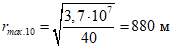 r, м | 250 | 300 | 400 | 500 | 600 | 700 | 800 | 880 | 1000 | 1114 |