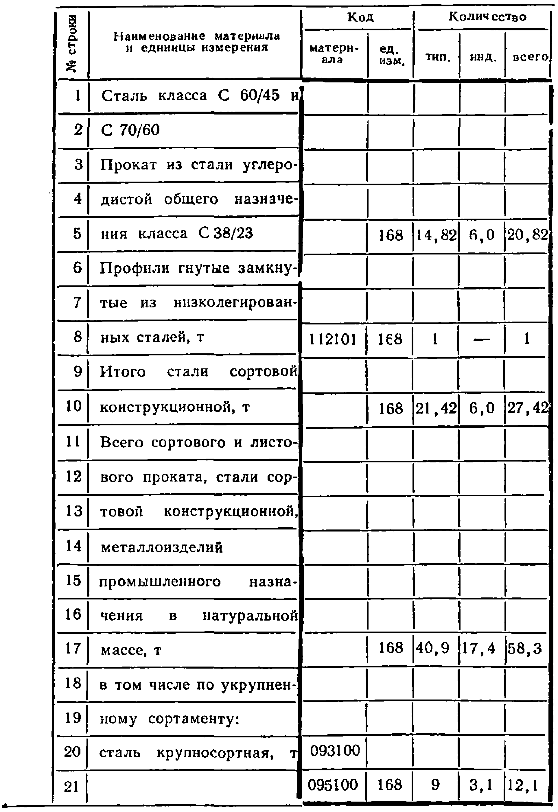 095000 | Сталь сортовая конструкционная | т | По классам стали и эффективным видам проката по профилям и маркам <3> |
