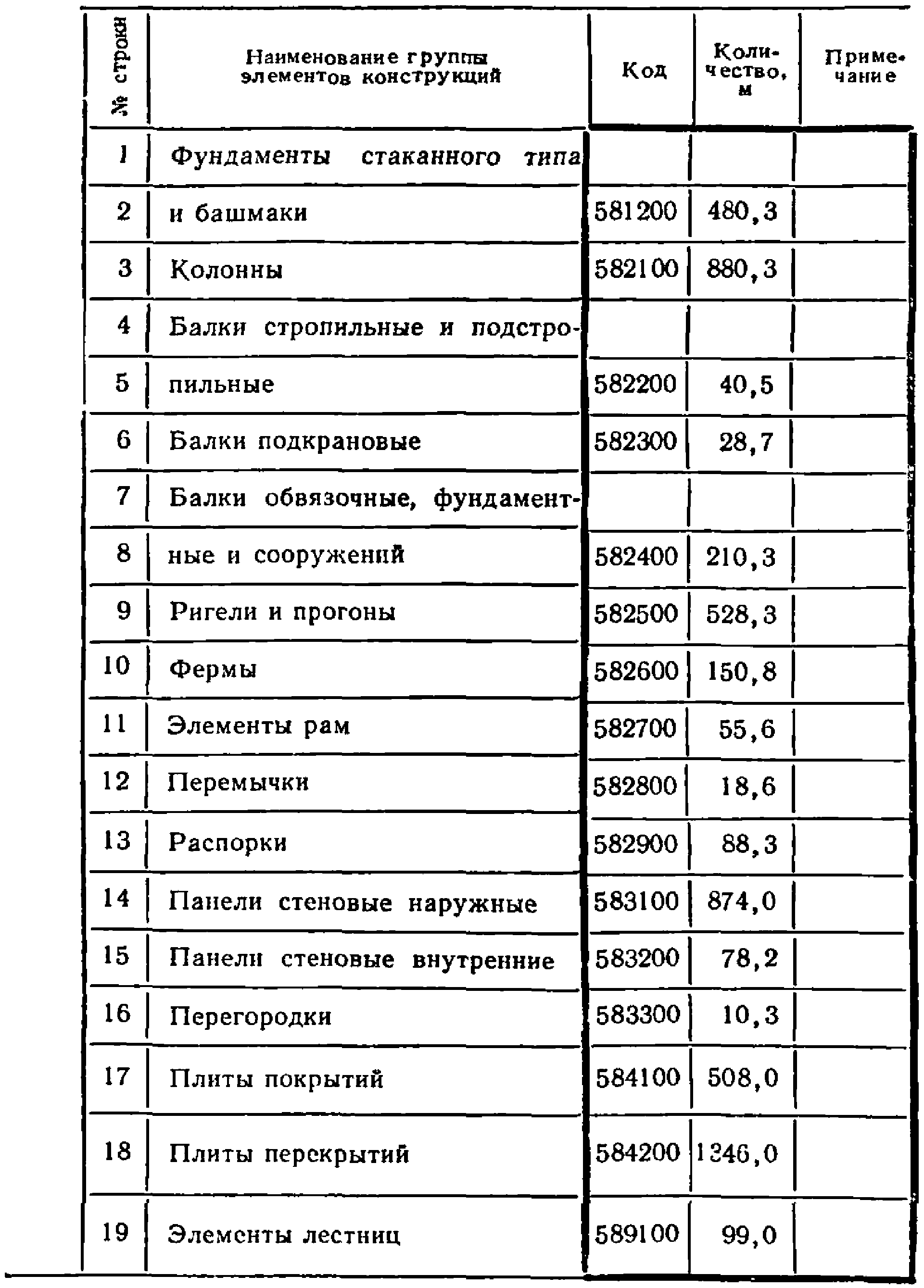 Блоки фундаментов Фундаменты стаканного типа и башмаки Плиты фундаментов Детали ростверков Сваи Колонны Балки стропильные и подстропильные Балки подкрановые Балки обвязочные, фундаментные и сооружений Ригели и прогоны Фермы Элементы рам Перемычки Распорки Панели стеновые наружные Панели стеновые внутренние Перегородки Блоки стеновые Плиты покрытий Плиты перекрытий Плиты дорожные Конструкции и детали пролетных строений мостов Конструкции и детали ГЭС Детали водопропускных труб (плиты днищ, блоки плитных перекрытий и оголовки) Детали смотровых колодцев Конструкции и детали силосов и градирен | Элементы траверс трубопроводов Конструкции и детали каналов и открытых водопроводов Трубы напорные Трубы безнапорные Опоры ЛЭП и связи, элементы контактной сети электрифицированных дорог и осветительной сети Шпалы Блоки и тюбинги для тоннелей и шахтная крепь Амфоры Плиты специальные аэродромные Приставки и столбики шпаллерные, для ограждения пастбищ Спецжелезобетон жаростойкий и прочий Элементы лестниц Блоки коммуникаций Архитектурно-строительные элементы зданий Элементы входов и приямков зданий Детали лифтовых и вентиляционных шахт Санитарно-технические кабины Элементы лоджий и балконов Элементы оград |
