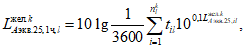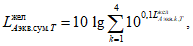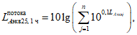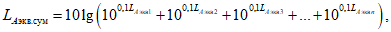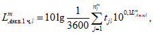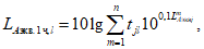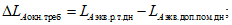 где LAэкв.доп.дн.н - допустимый эквивалентный уровень звука для территорий жилых, общественно-деловых и рекреационных зон в дневной (или в ночной) период суток, дБА;