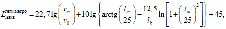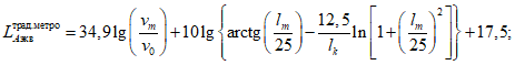 R0 - опорное расстояние, на котором определяется шумовая характеристика транспортного потока (для железнодорожного транспорта R0 = 25 м, для автомобильного транспорта R0 = 7,5 м).