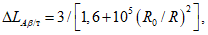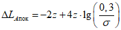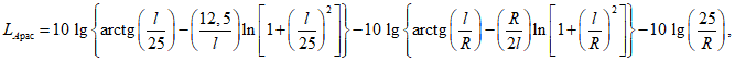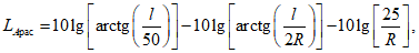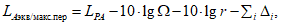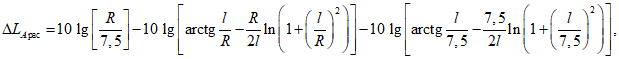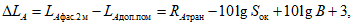 LAпотока экв - 10lg(Rгран/R0) - 0,005·Rгран =
